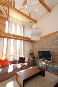玄関ドアを開けるとふわっと木の香りが漂い、自然素材に囲まれて、とっても快適です。