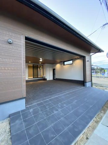 愛車を眺められるインナーガレージ 眺めの良い高台のフリースペース