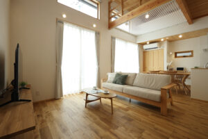 木の城いちばんのモデルハウスは、無垢の木や珪藻土など、自然素材をふんだんに使ったカラダにやさしい住まいです。