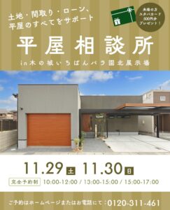 さて、今日から明日の2日間、バラ園北展示場で、平屋相談会を開催中です。