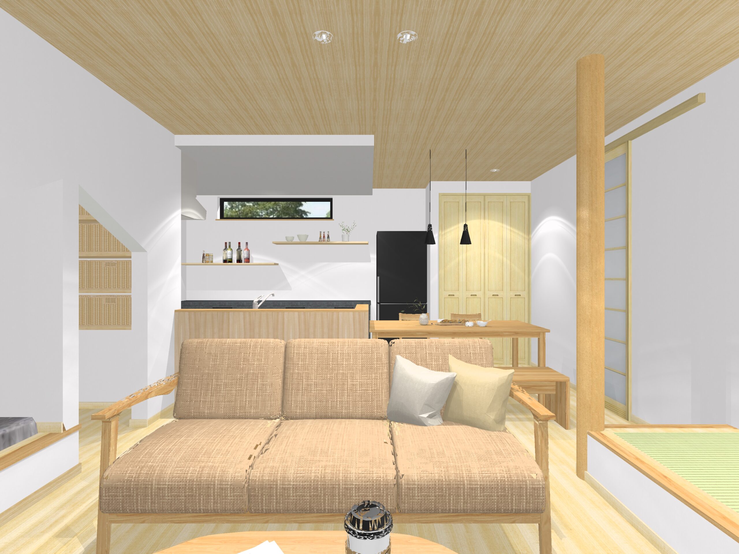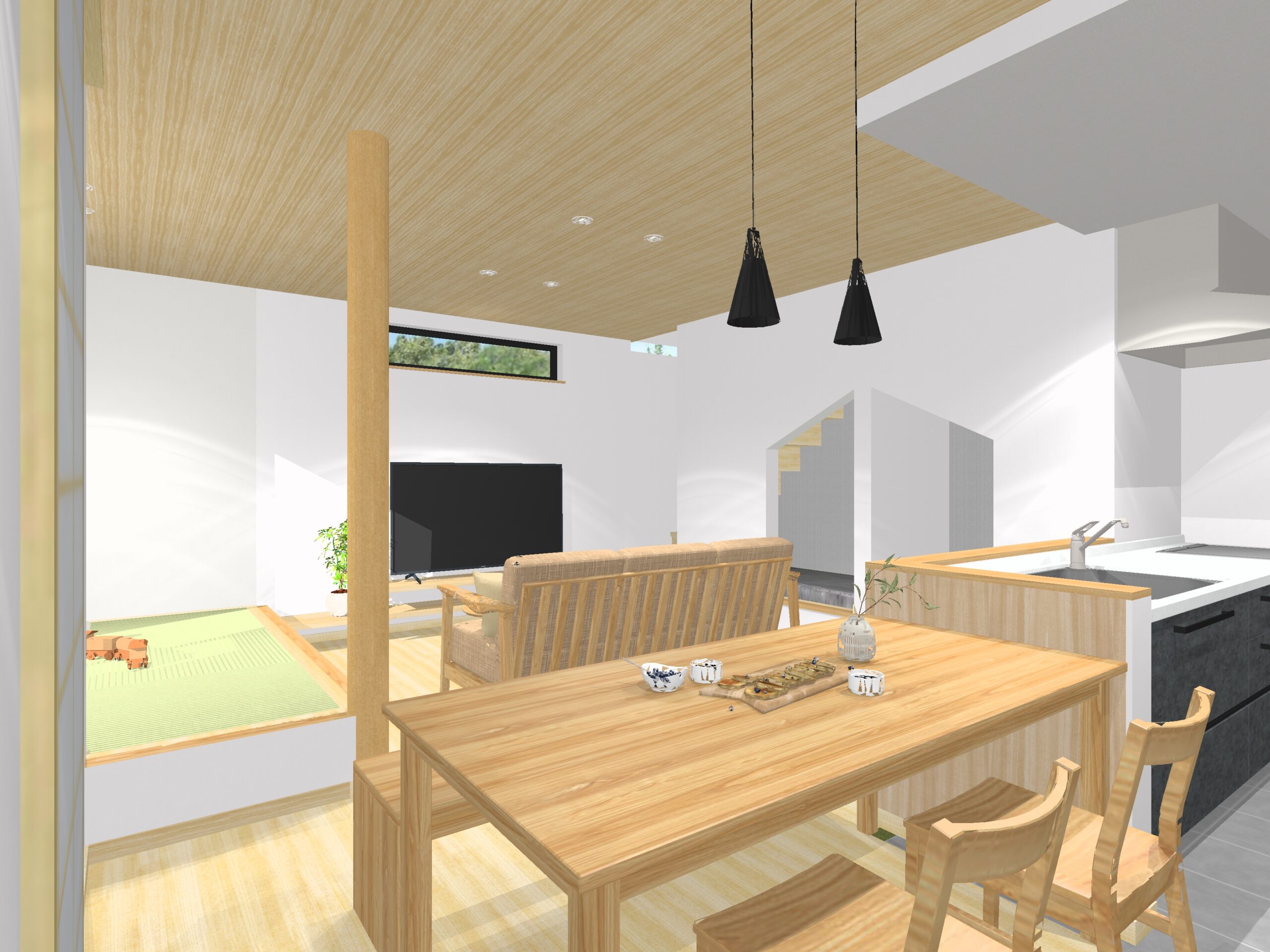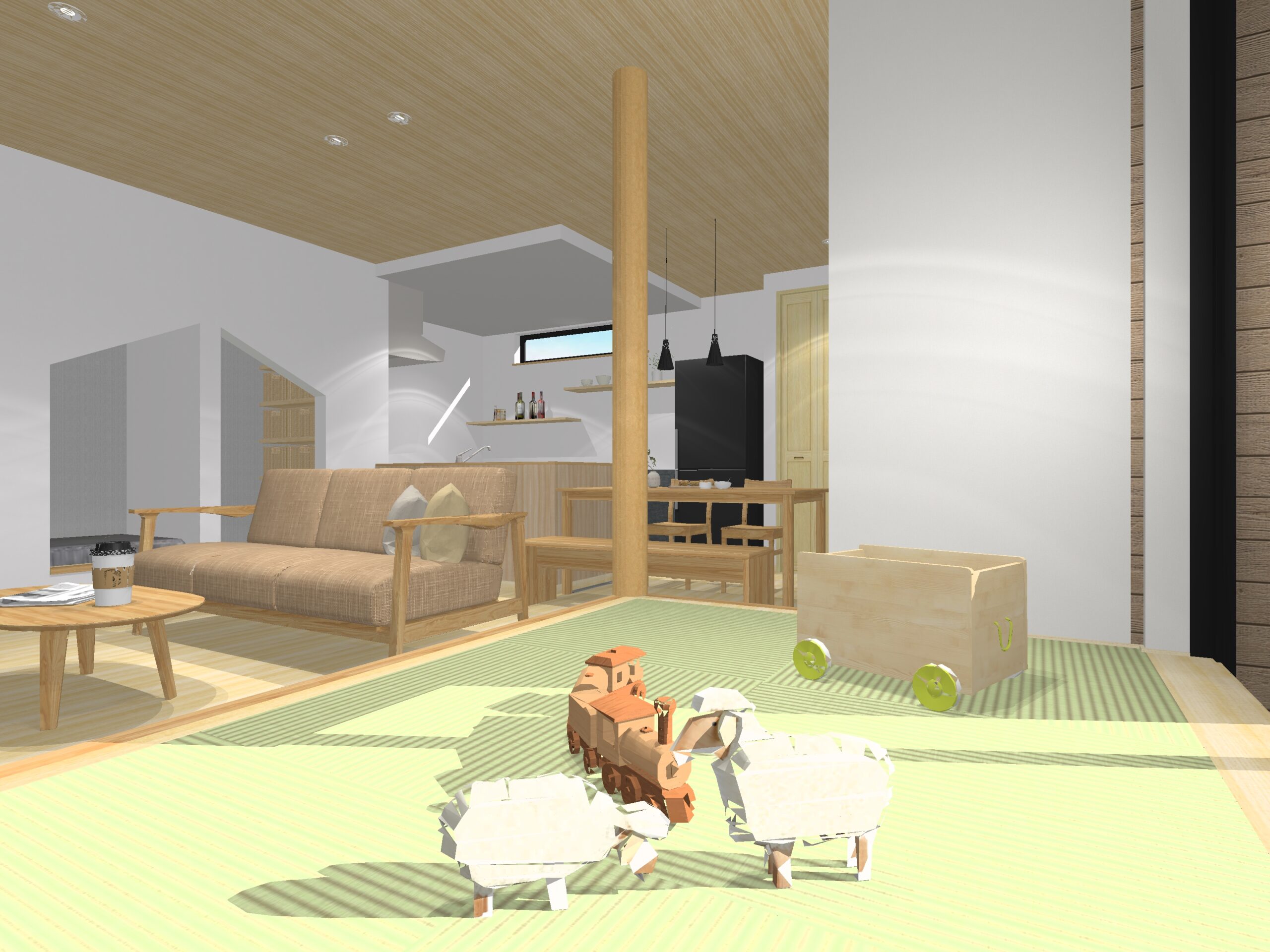 お子さまの遊び場やお昼寝に大活躍の畳コーナーをはじめ、ヌック空間を取り入れた、家族みんなが心地よく過ごせる住まいです。2階には在宅ワークにも便利な書斎スペースを確保し、生活と仕事のバランスも快適にサポート。日々の使いやすさを考えた造作の工夫も随所に施されています。