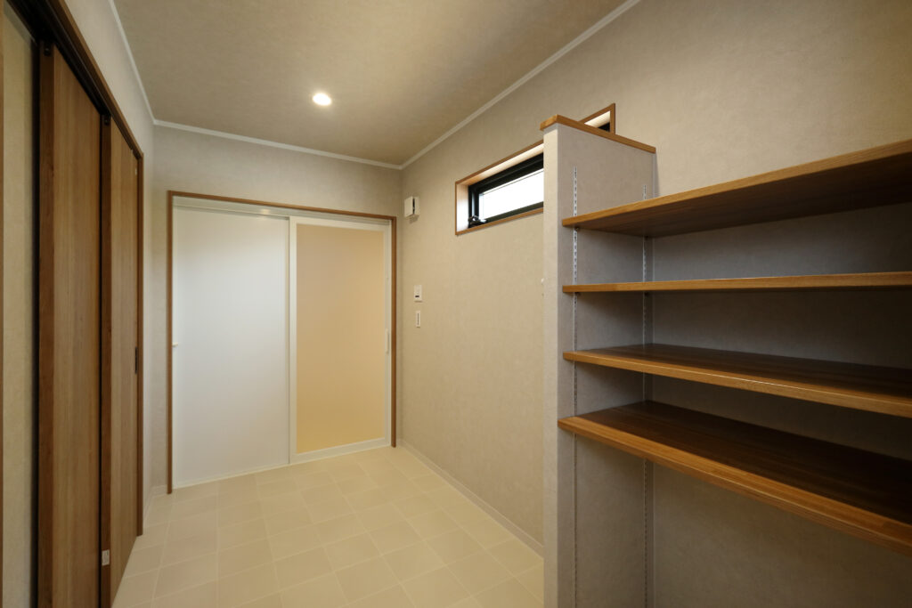 可動棚がある3.5帖の脱衣室