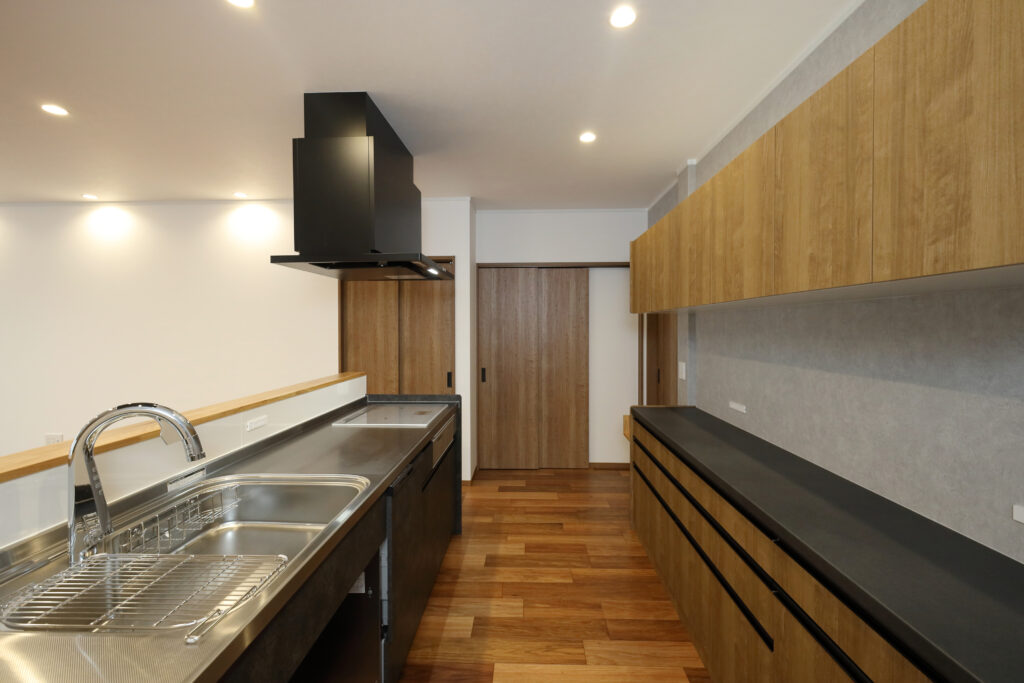 カップボードとの幅もゆったり確保したキッチン空間