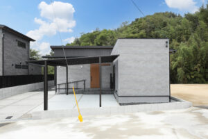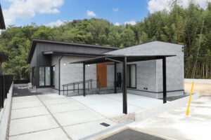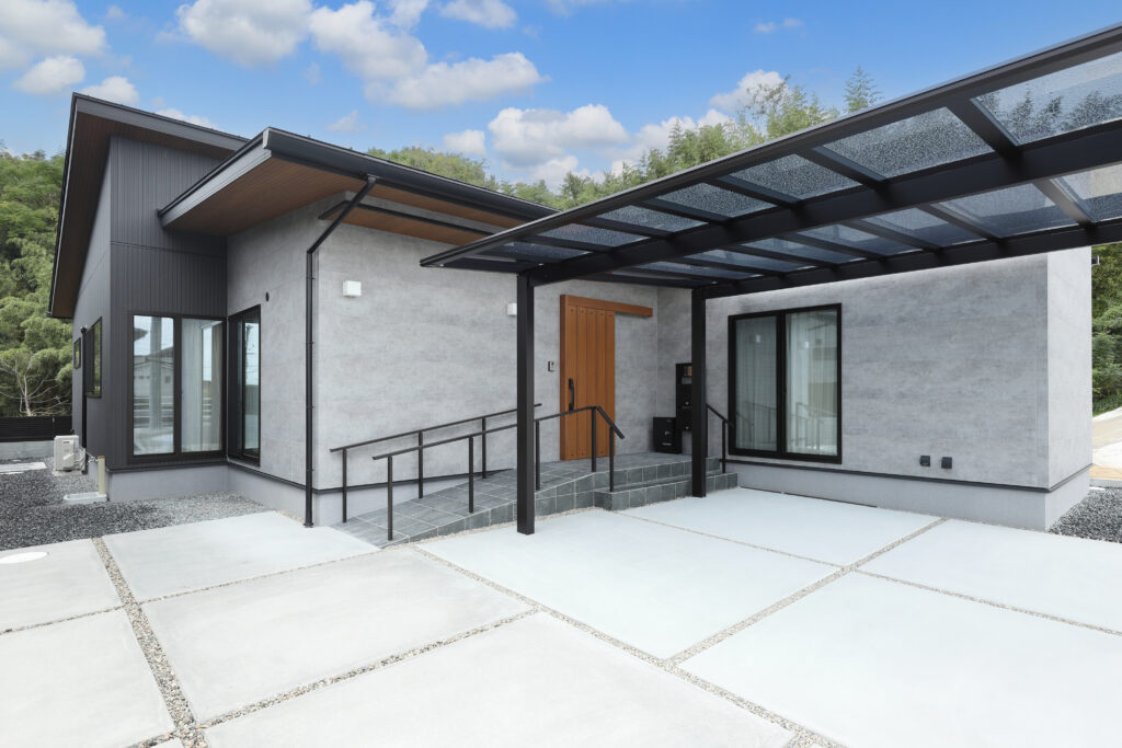 スロープのあるアプローチ、高低差の少ない玄関ホール・・・完全バリアフリー設計で回遊できる〝こだわりの平屋〟が完成しました。