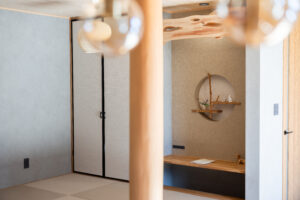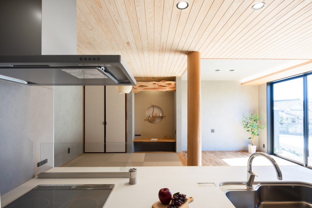 遊びやくつろぎの多様なシーンに対応できるスペースとして、キッチン向かいに小上がりの畳コーナーを設置。